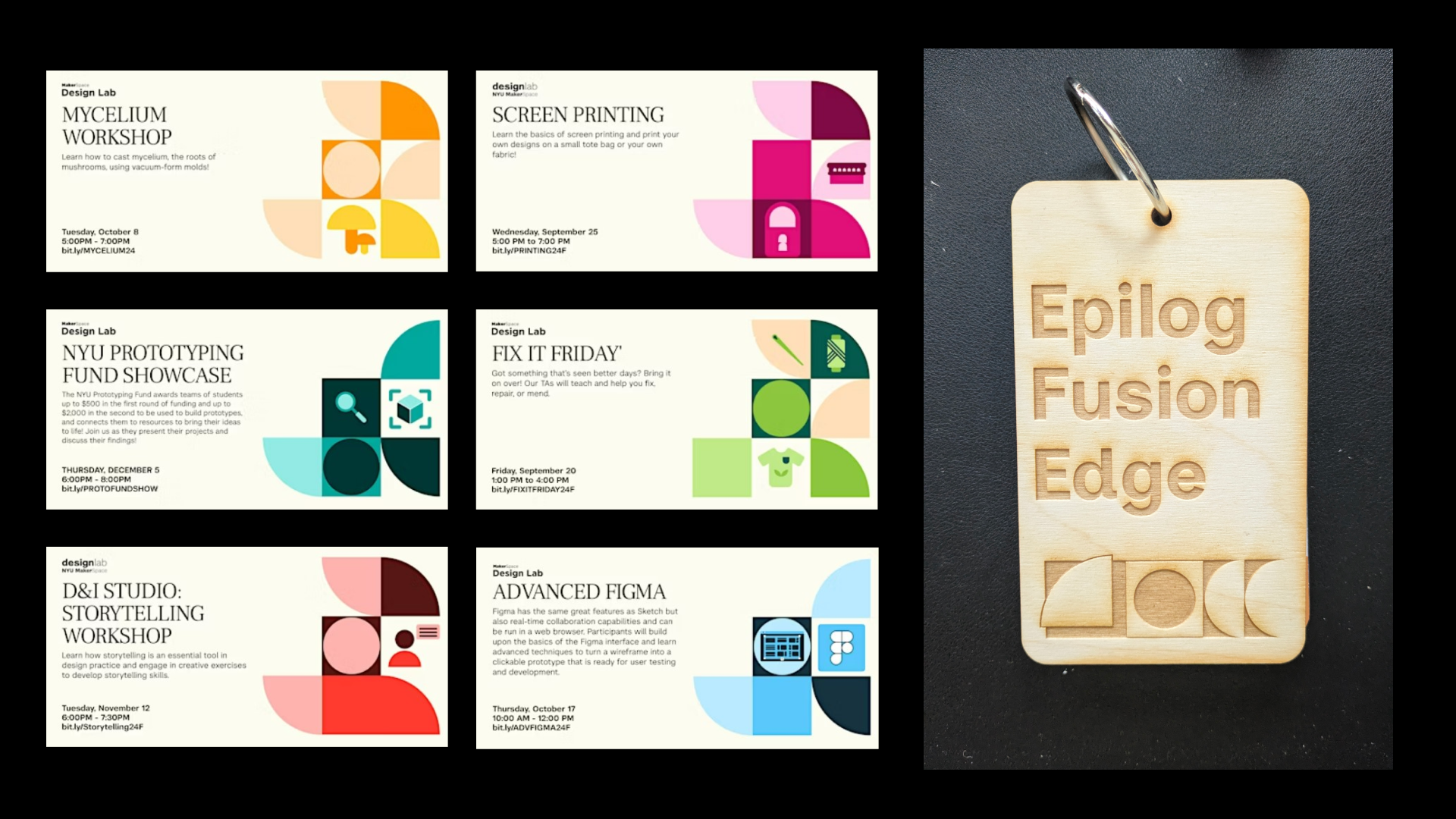 I adopted the geometric shapes to match that of the branding. In the spirit of this project, I used the Epilog Fusion Edge itself to make the cover!