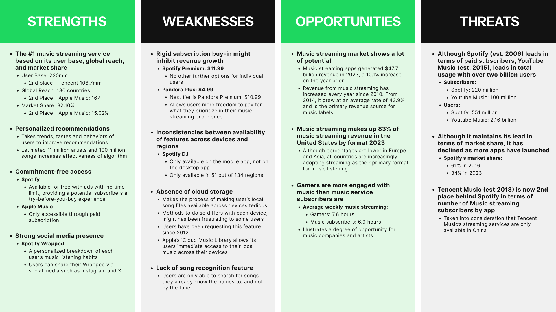 I worked on the Strengths, Weaknesses, Opportunities, and Threats (SWOT) Analysis.