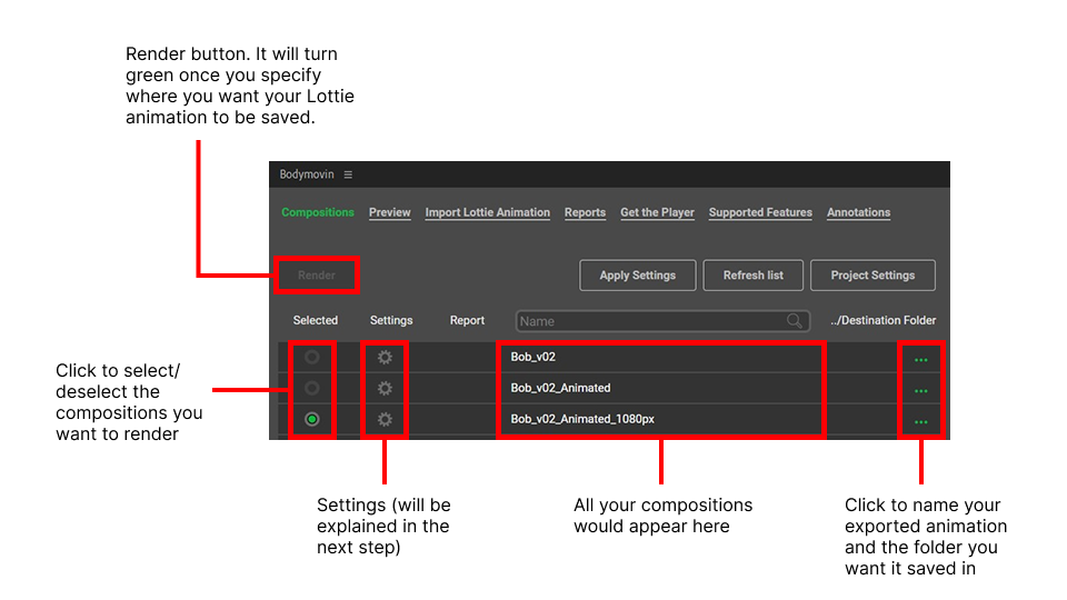 Exporting your animation using the Bodymovin’ Plugin (install it here)