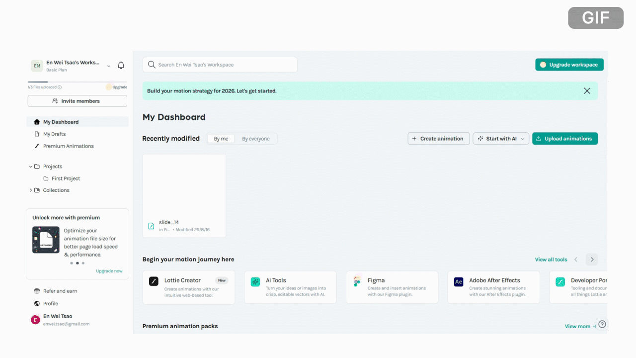 You will be taken to a new page where you would see a preview of your animation being played and a couple of options on the right.
