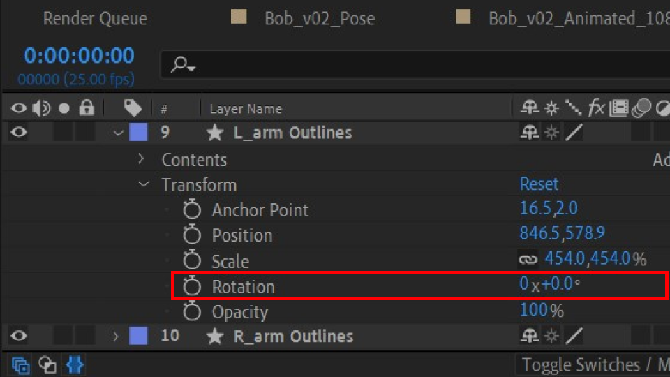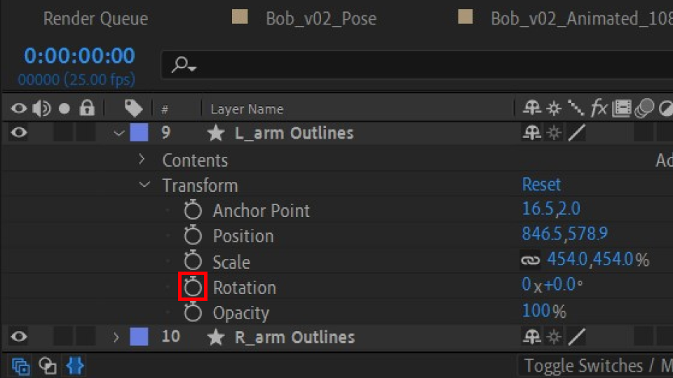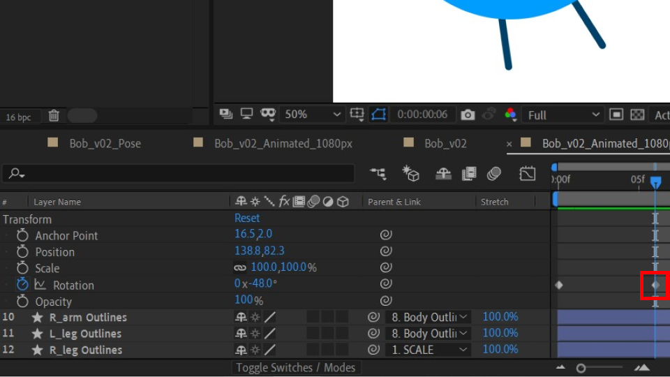 Move your playhead further down the timeline and rotate Bob’s arm.